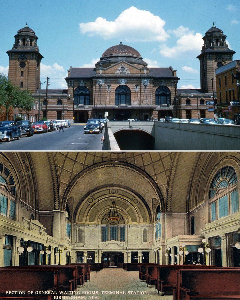 As the motorcar flourished, many of the great stations fell into disuse and were demolished. Birmingham's great Byzantine / Beaux-Arts station was razed in 1969 to make way for a new highway.