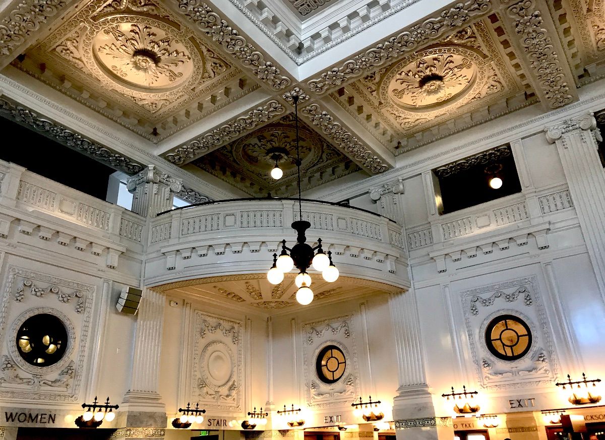 One of the first great union stations, a triumph of Beaux-Arts architecture with no expense spared. The coffered ceiling is laced with gold leaf, and rows of marble centurions keep watch over the main hall.